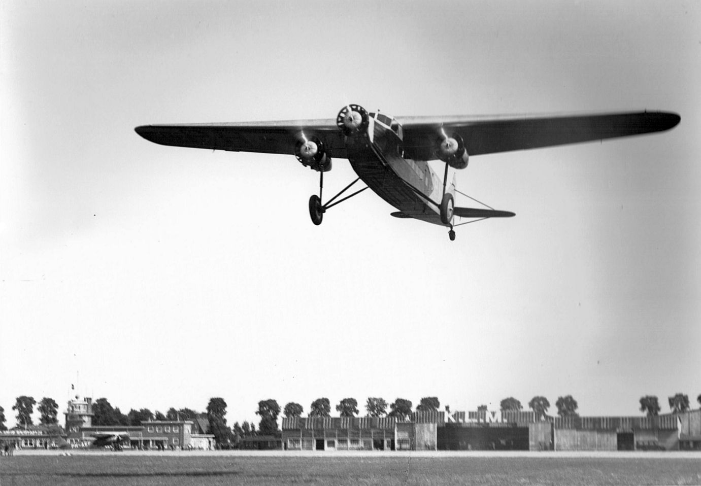 - Tussentijds aankomst van de Fokker F.VII B/3m PK-AFF c/n 5188 van KNILM. ( Koninklijke Nederlands Indische Luchtvaart Maatschappij).