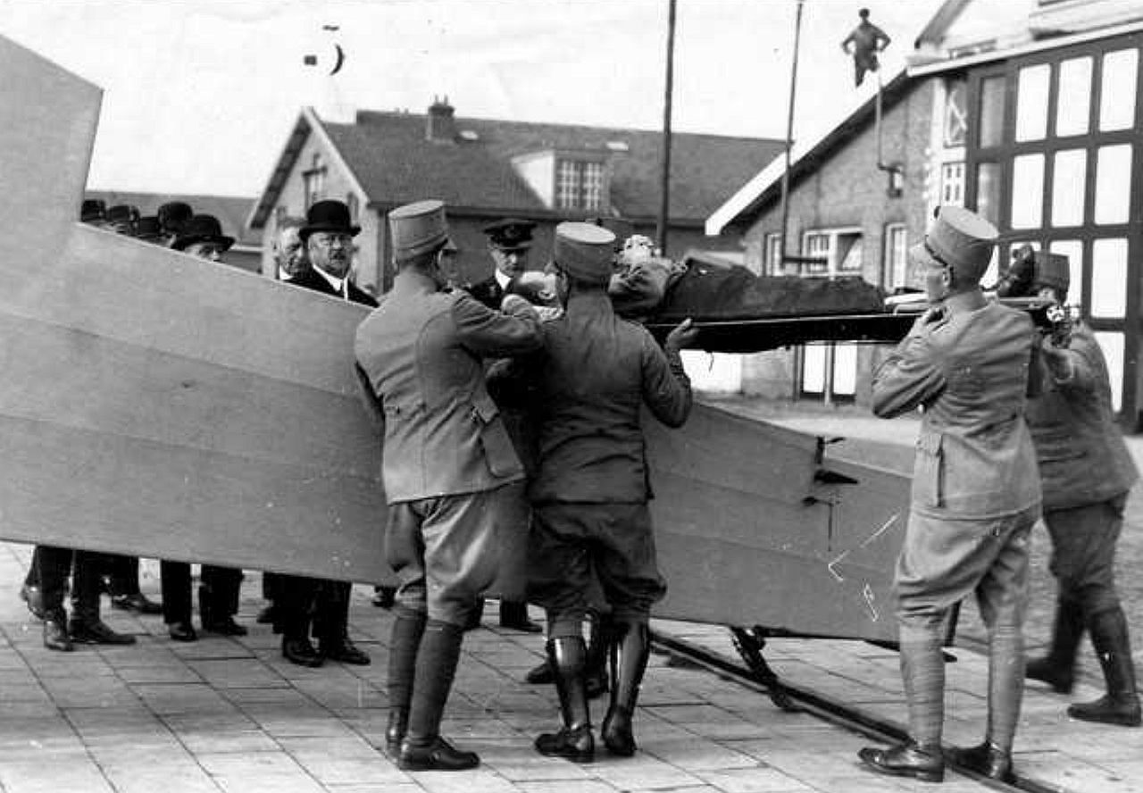 Het achterste bovenstuk van de romp kon worden opengeklapt zodat er een brancard in kon.