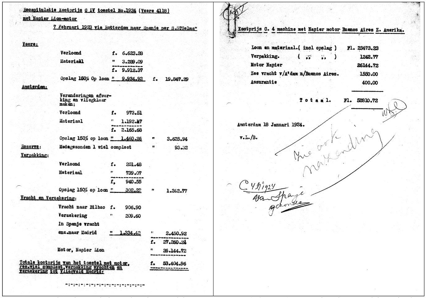 De totale kosten bedroegen 55.000 gulden. In het midden van dat jaar arriveerde kapitein Otto Ballod door toedoen van de heer Kinkekin, Fokkers vertegenwoordiger in Buenos Aires.