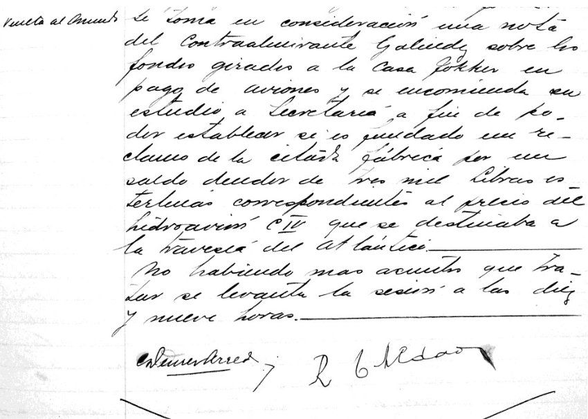 De leden García, Lavalle en Noble kregen de opdracht de openstaande schulden op te lossen met de heer Kinkelin, hun plaatselijke Fokker-vertegenwoordiger voor het koopcontract van de C.IV H-NABW die in Metán was neergestort.