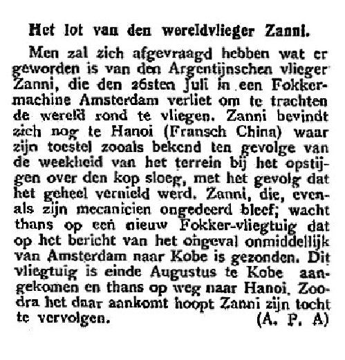 Op 6 juni 1924 werd hij door de fabriek getest en vier dagen later officieel afgeleverd. De vlucht vertrok op 26 juli om 6.35 uur uit Amsterdam onder slechte weersomstandigheden, waardoor het vliegtuig moest landen in Rotterdam (80 km van vertrek). Het vliegtuig werd op 19 augustus in Hanoi uitgeschakeld toen het omsloeg tijdens een regenachtige start.