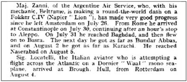 Na een lange en gedetailleerde studie, begonnen in 1922 met de tussenkomst van de Nationale Meteorologische Dienst, diende kapitein Pedro Leandro Zanni op 7 december bij de autoriteiten van de Aero Club Argentino31 een project in om met een vliegtuig rond de wereld te vliegen.