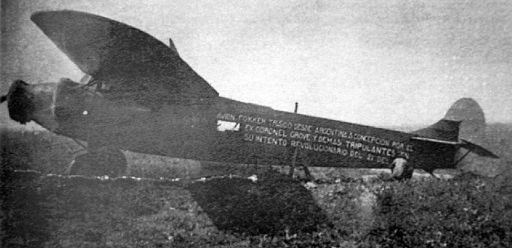 (FOKKER VLIEGTUIG VAN ARGENTINIË NAAR CONCEPCION GEBRACHT DOOR DE VOORMALIGE KOLONEL GROVE EN ANDERE BEMANNINGSLEDEN IN HUN REVOLUTIONAIRE POGING VAN DE 21E...)