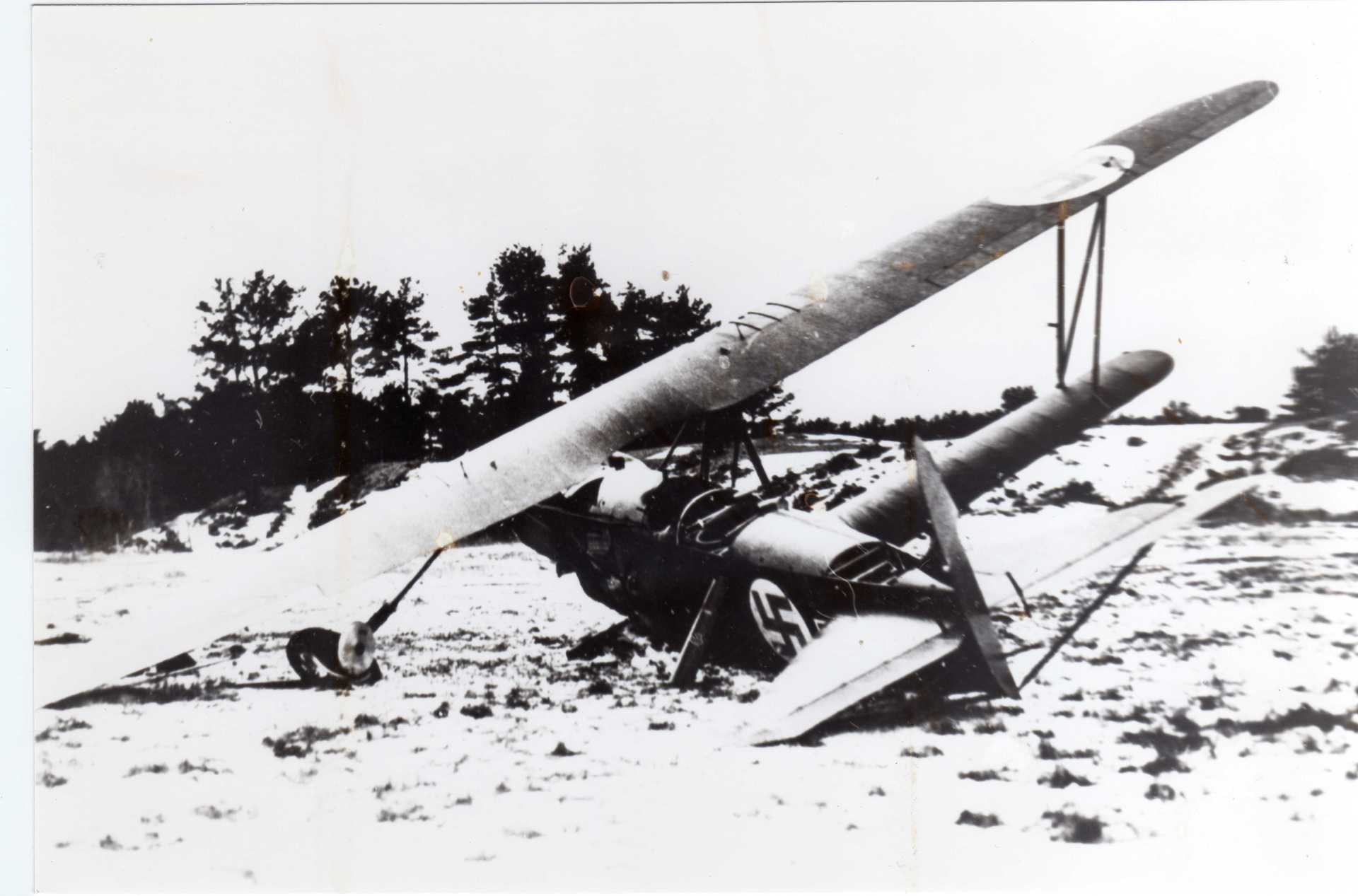 Het moet in de winter van 1939 zijn en hulp is reeds gearriveerd om het toestel te repareren.
