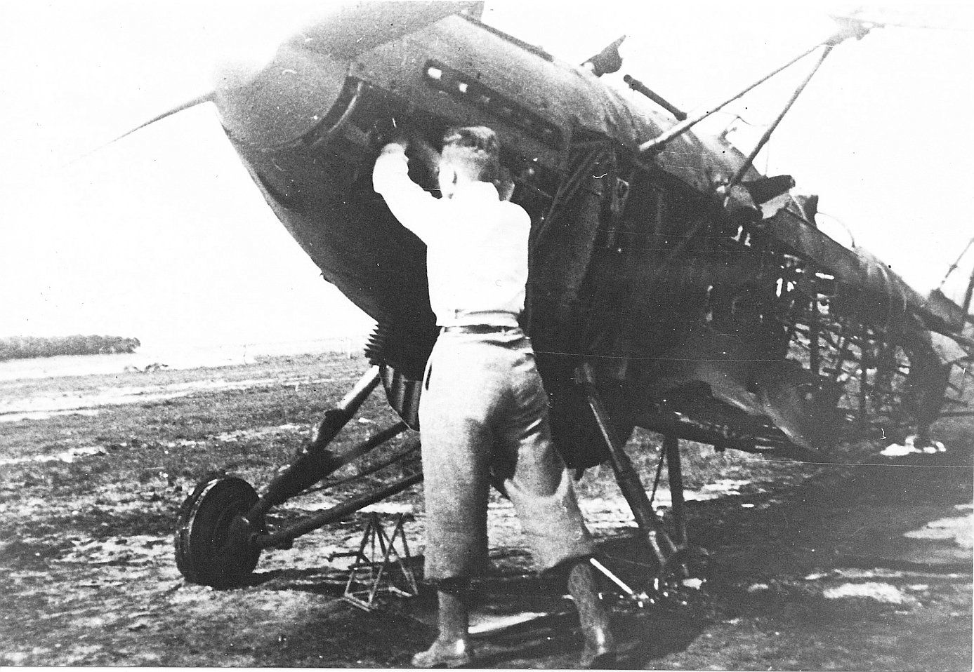 In de verte nog een niet gestarte C.X met 2 wegrennende soldaten.