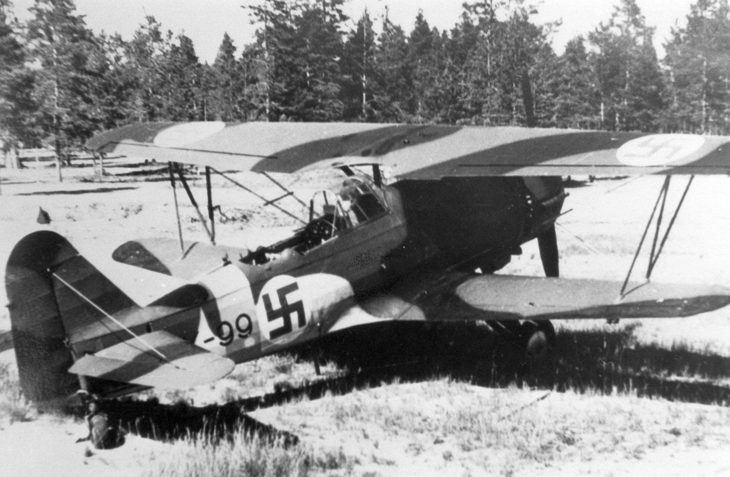 ButtonDe FK 99 van de Finse luchtmacht, wat dichterbij opgenomen.
