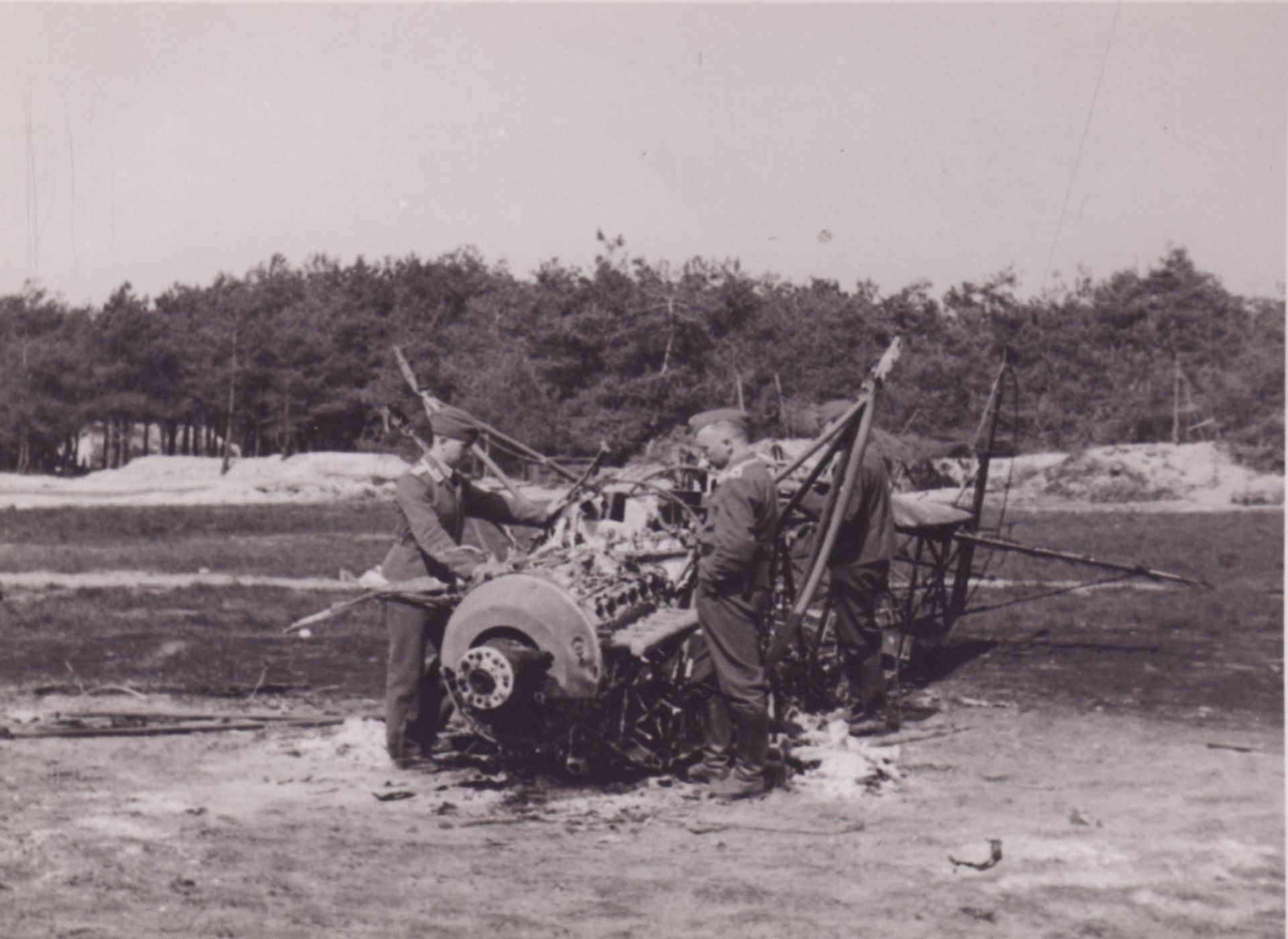 On the right are the remains of a Koolhoven FK-51 training aircraft with a white stripe over the engine.