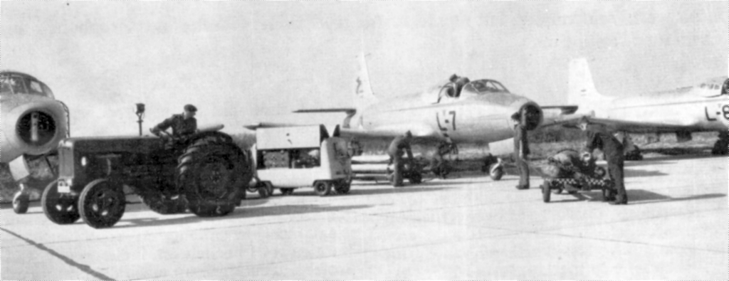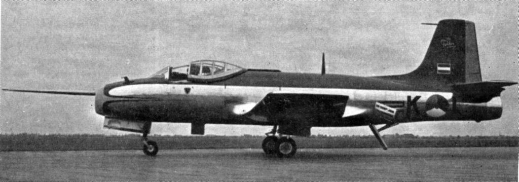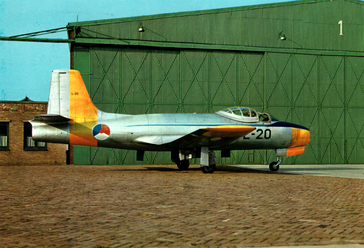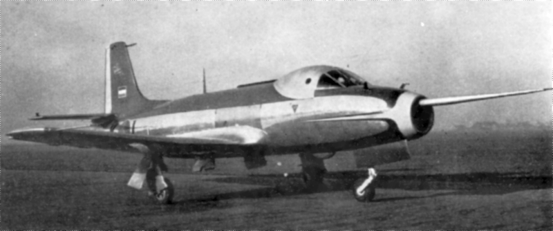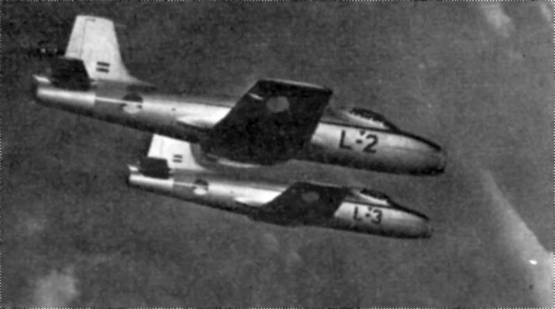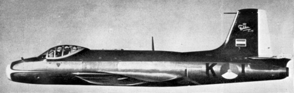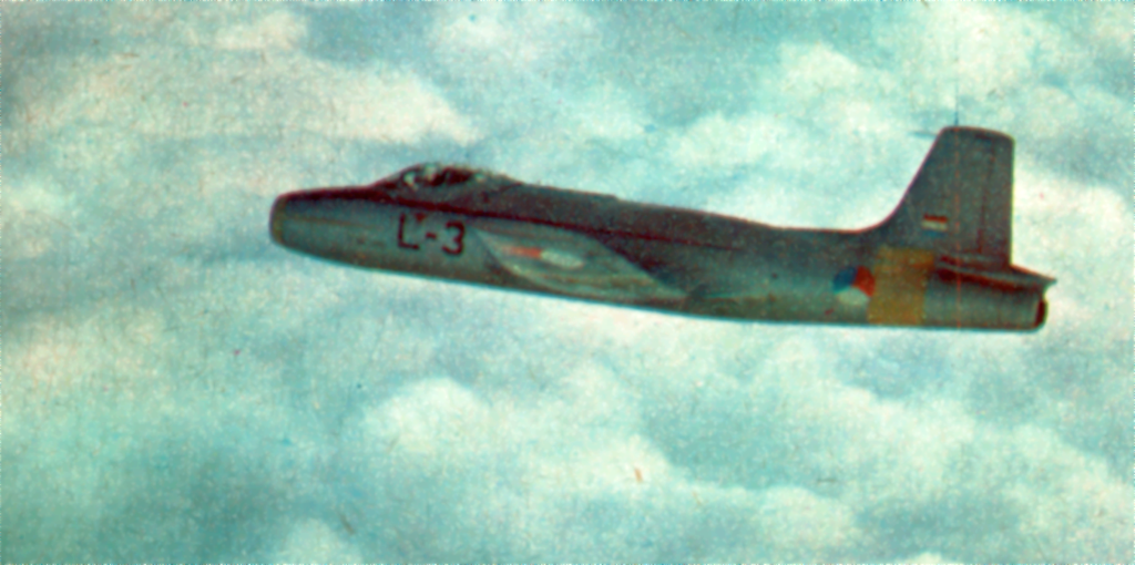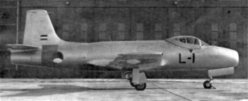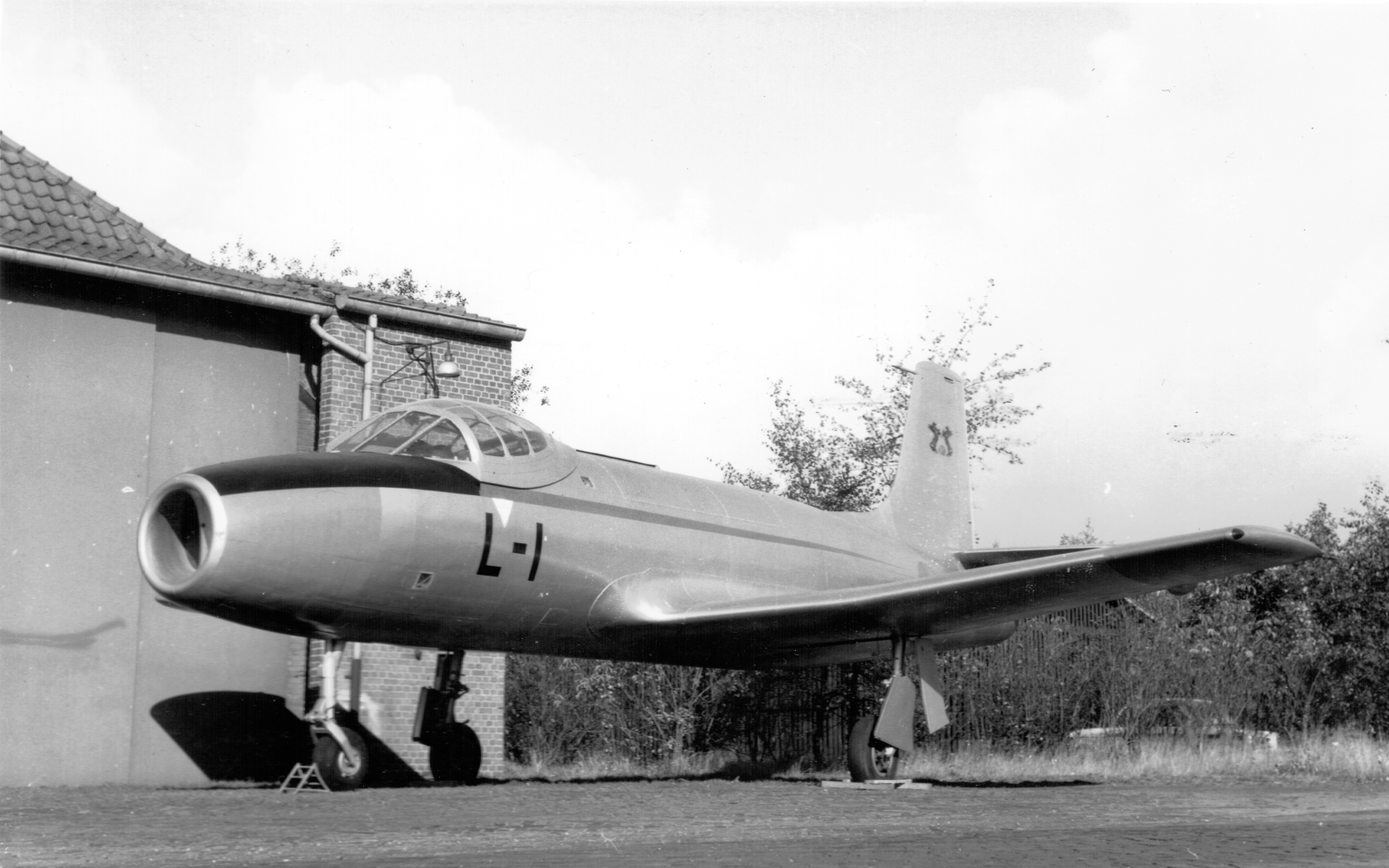 Originally the prototype, with registration L-1, had the Rolls-Royce Derwent 8 turbine also used in the Gloster Meteor. Later, the more powerfull RR Nene of 5100 lbs thrust was built in. Then the prototype received the registration K-1.