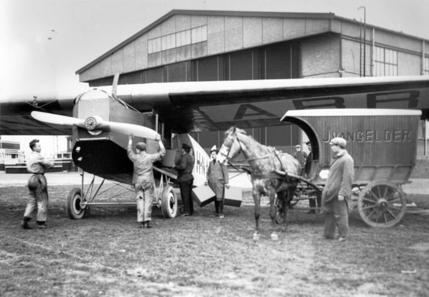 We zien het instappen van de passagiers, het inladen van vracht en bagage, het aanzwengelen van de propeller en het vertrek.