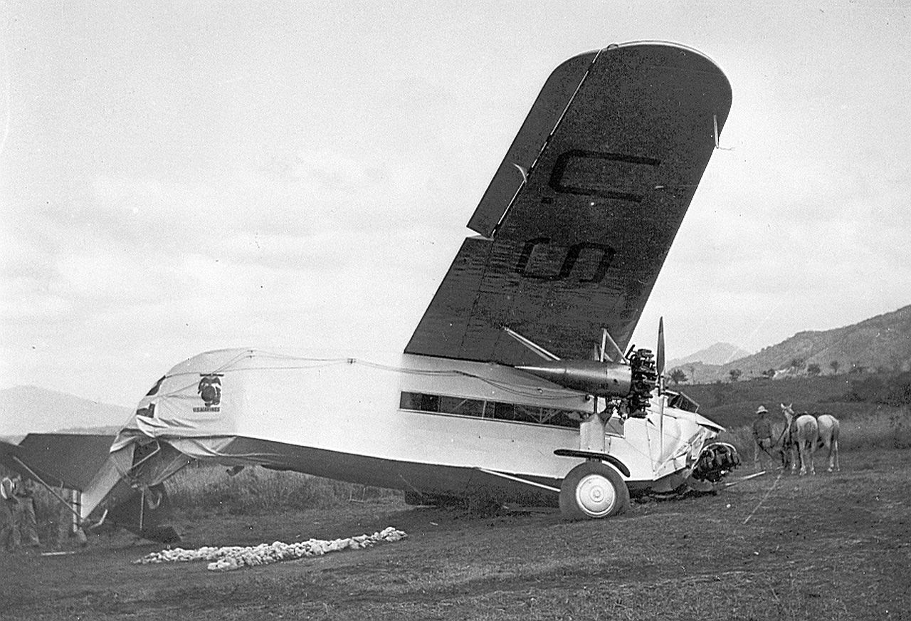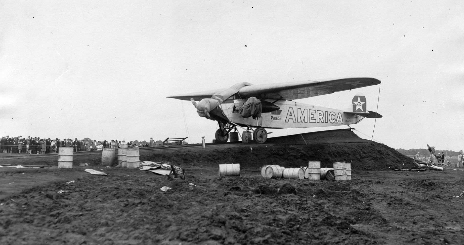 De Trimotor ‘America’ eindigde in Het Kanaal aan het strand van Ver sur Mer toen Parijs niet gevonden kon worden.