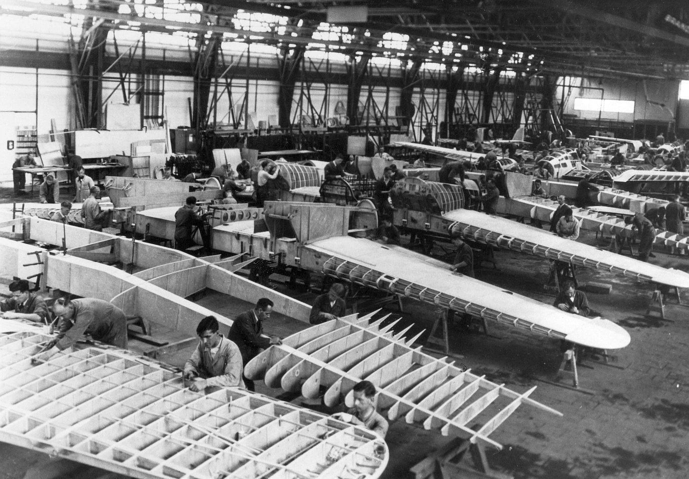 Vooraan zien we de bouw van de vleugels, en iets verder de vleugelbekleding.