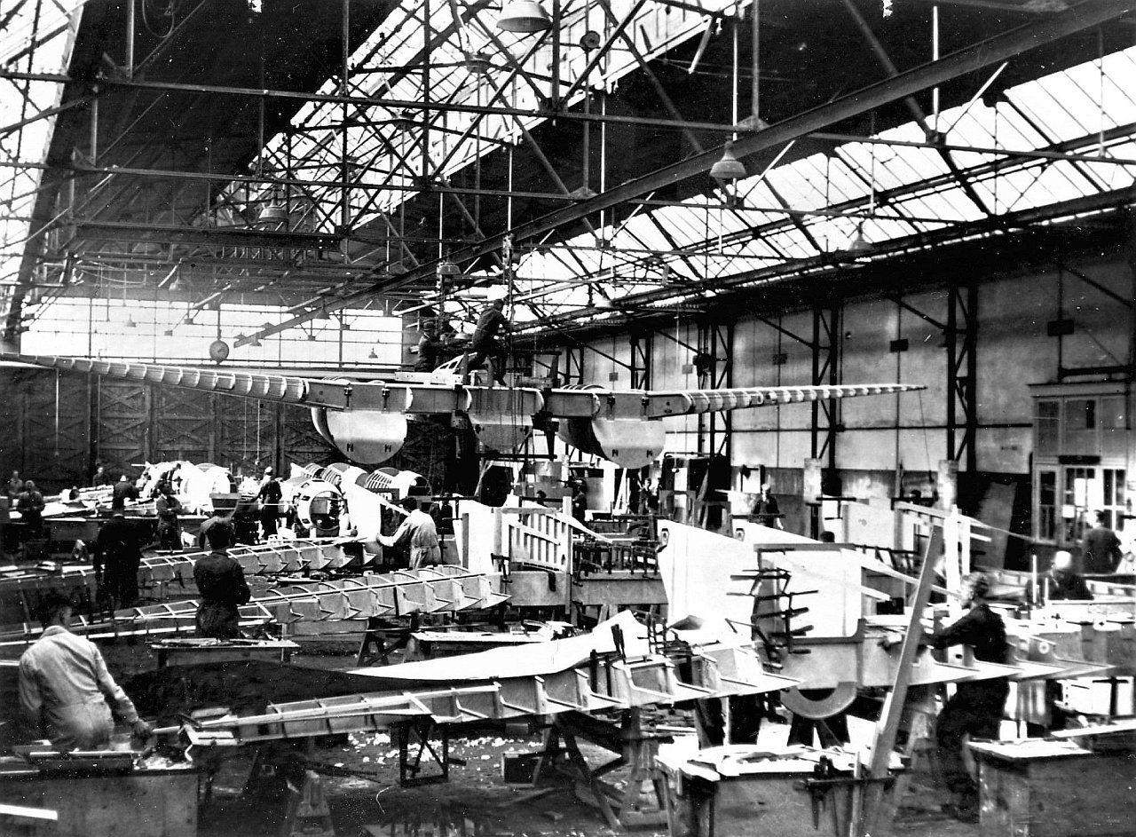 Van voor naar achter bevinden zich de G.1 's in aanbouw en in verschillende stadia.