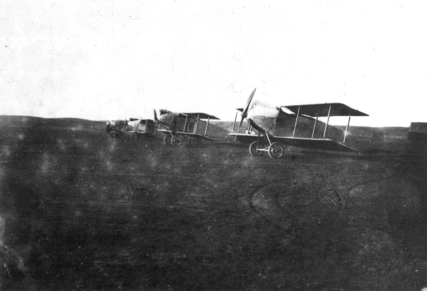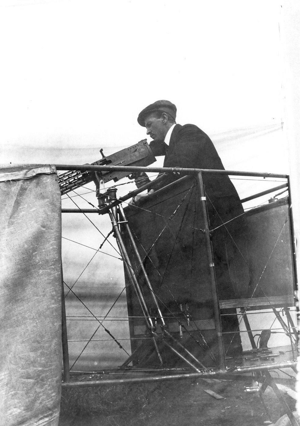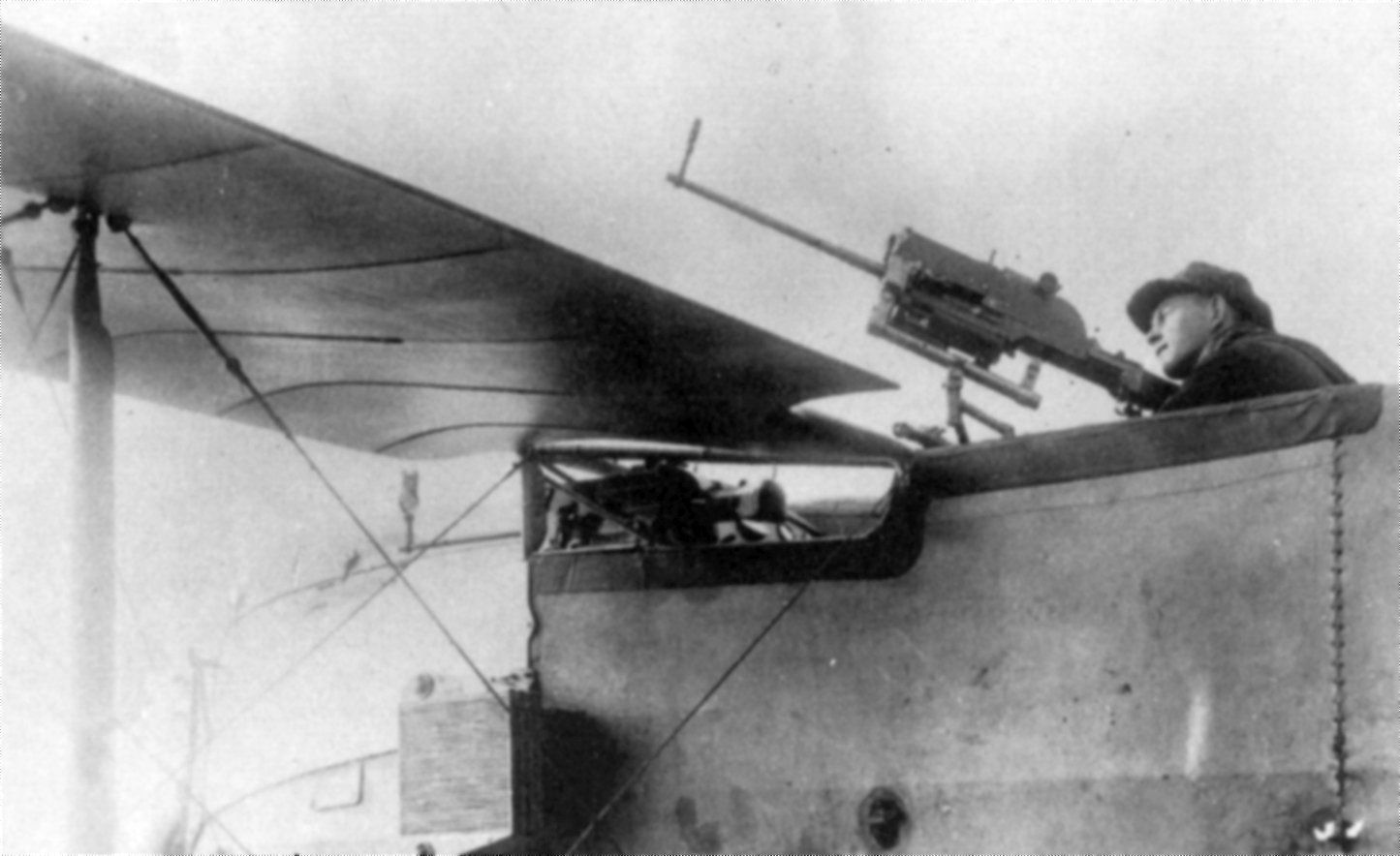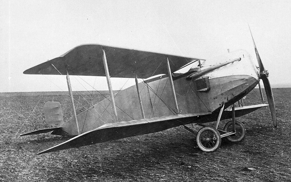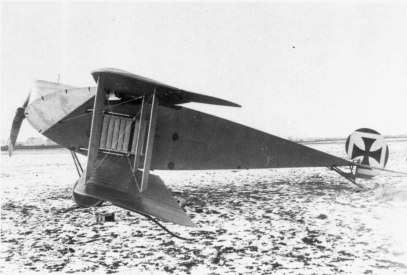 Twee afsteunstijlen verbonden de boven en de onder vleugel van deze tweedekker.